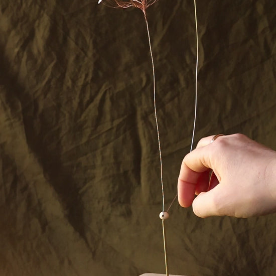 Petite sculpture en série limitée, dans la continuité de ma démarche, cette série est réalisée à partir de matériaux recyclés, teints à la main ou revalorisés. Chaque sculpture étant façonnée manuellement, elles présentent toutes leurs propres singularités.